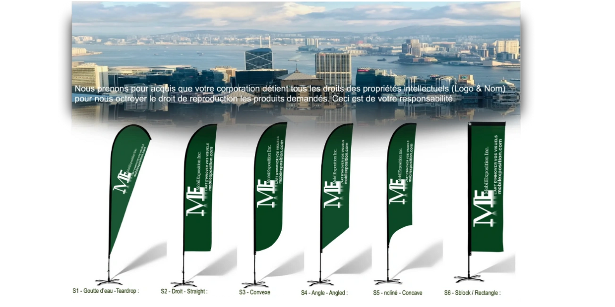 La forme unique des oriflammes publicitaires en forme de Flamme de MobilExposition ajoute un peu plus d'excitation visuelle que les bannières standards.